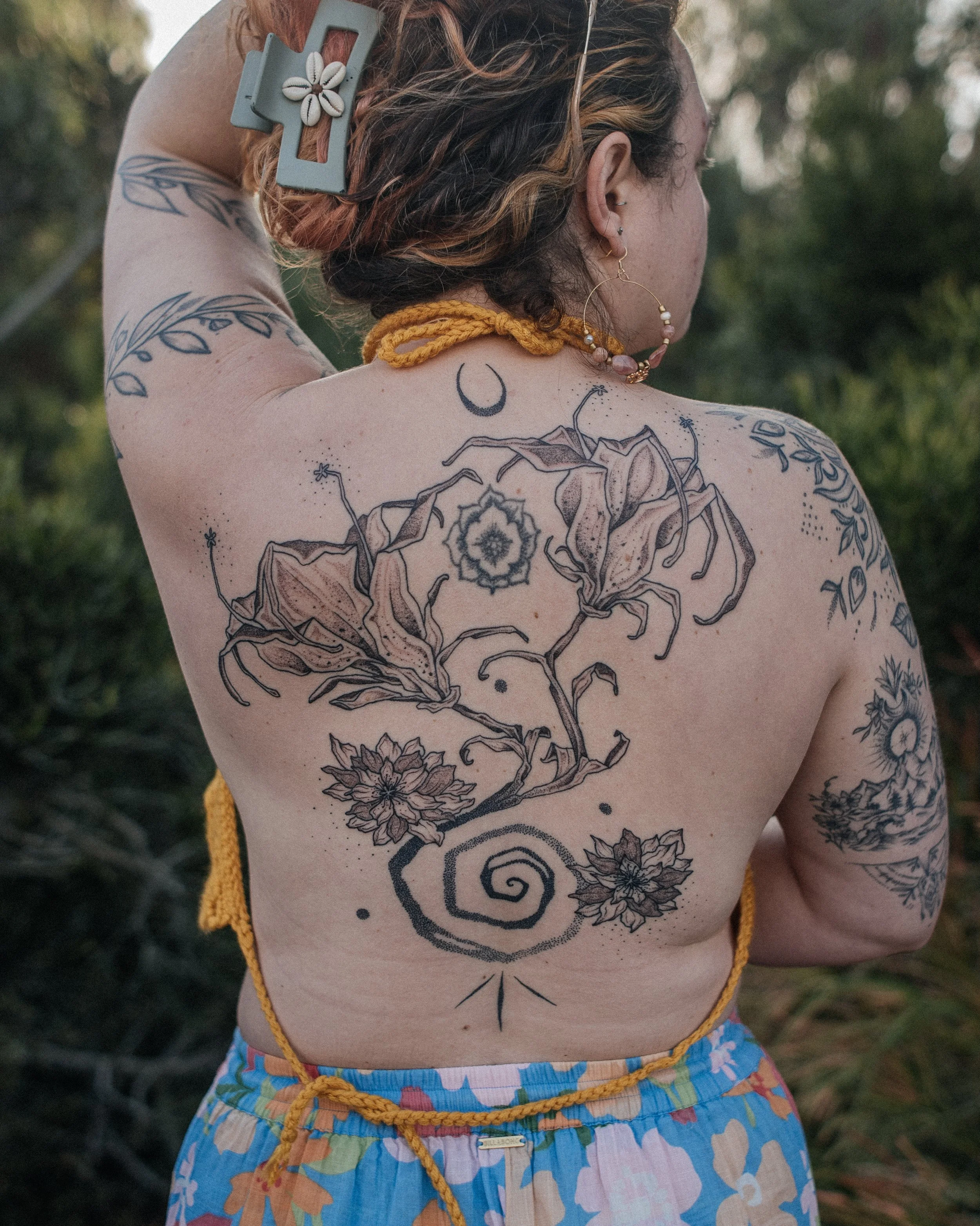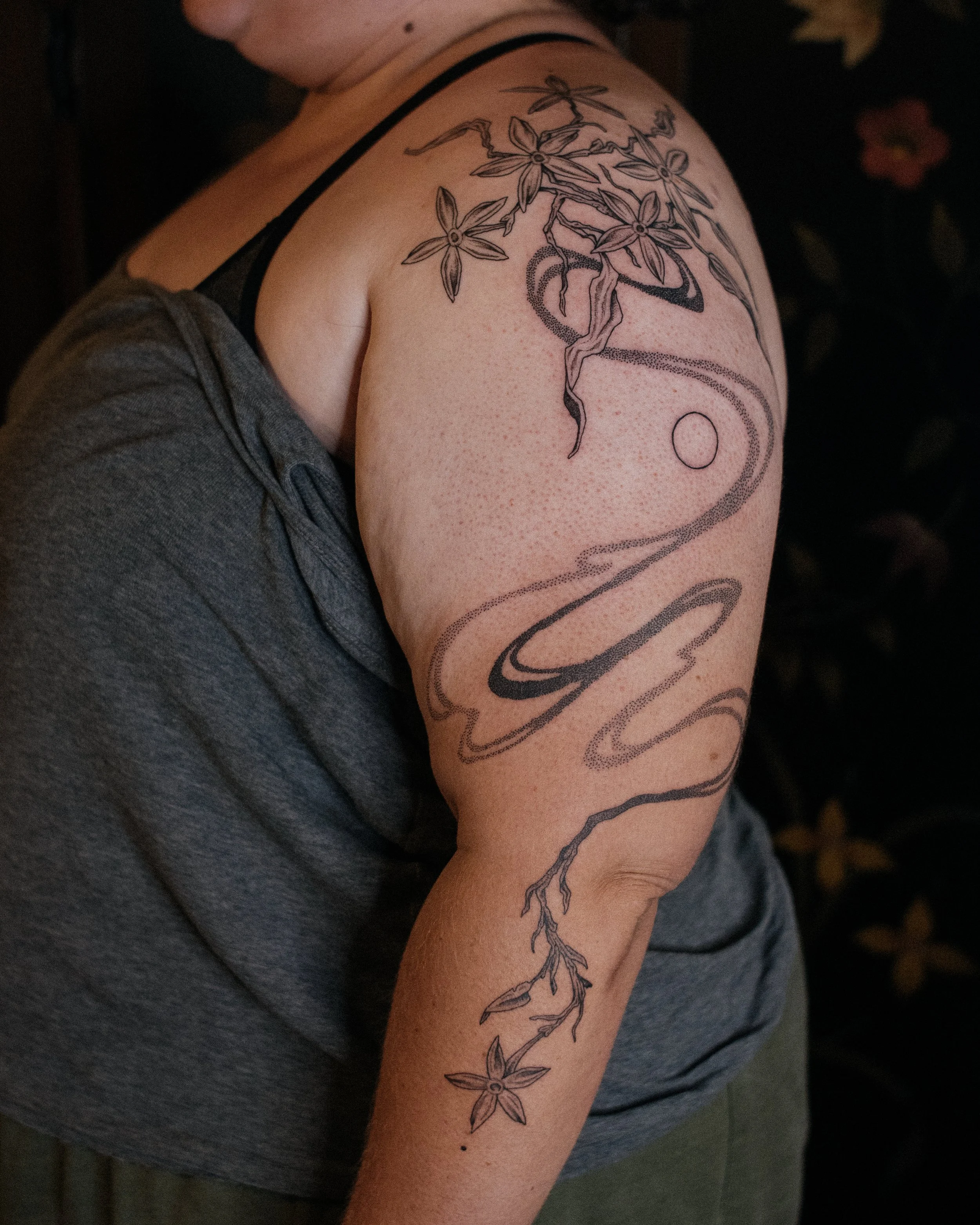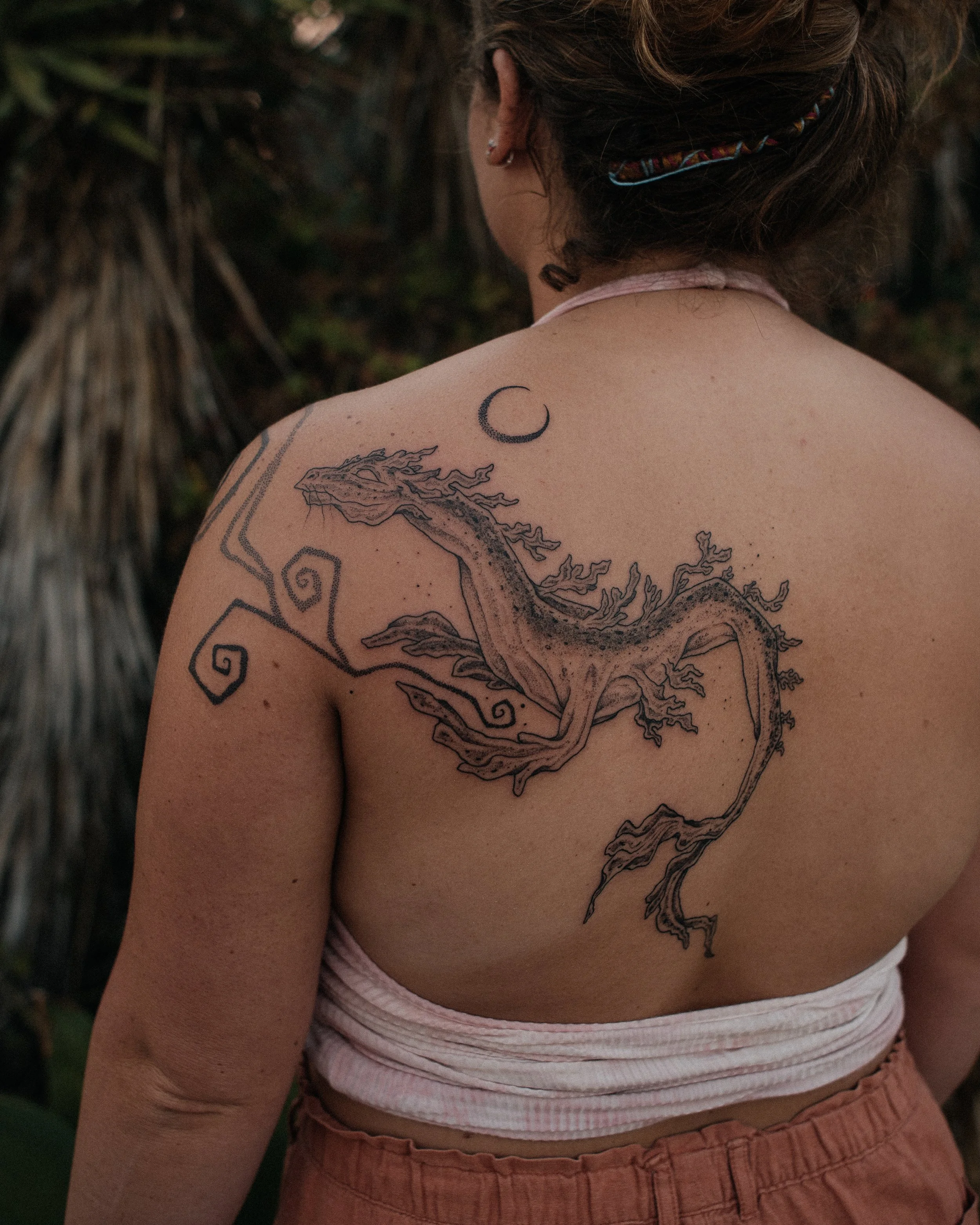 PLEASE ONLY SUBMIT INQUIRES WITH SOME SORT OF SEED VISION. It’s absolutely okay if you don’t know precisely how you want the piece to flow, exactly what size or placement you want, or what extra swirls of energy or blackwork you want added to the design - that’s my job, I am your tattoo midwife! However, I do my best work when I am given a sprout of vision to nurture and create a visual garden out of. I am not a tattoo artist to come to and say “do whatever you want” - I am a collaborator and a weaver of image and magic; I want you meet you at your tattoo dreams and bring them to life, and I do this best when I am given an initial idea to work with (examples: candle, certain flowers and herbs, abstract energy mountain flow, eucalyptus leaves, etc).